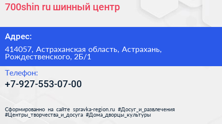 700shin.ru, шинный центр по адресу 414057, Астраханская область, Астрахань, Рождественского, 2Б/1 в дальнейшем Организация, размещена в следующих категориях: