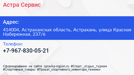 Астра Сервис по адресу 414004, Астраханская область, Астрахань, улица Красная Набережная, 237/6 в дальнейшем Организация, размещена в следующих категориях: