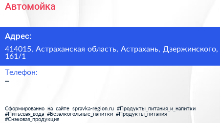 Автомойка по адресу 414015, Астраханская область, Астрахань, Дзержинского, 161/1 в дальнейшем Организация, размещена в следующих категориях: