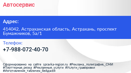 Автосервис по адресу 414042, Астраханская область, Астрахань, проспект Бумажников, 5а/1 в дальнейшем Организация, размещена в следующих категориях: