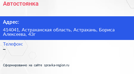 Автостоянка по адресу 414041, Астраханская область, Астрахань, Бориса Алексеева, 43г в дальнейшем Организация, размещена в следующих категориях: