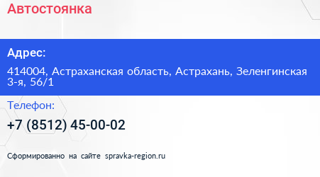 Автостоянка по адресу 414004, Астраханская область, Астрахань, Зеленгинская 3-я, 56/1 в дальнейшем Организация, размещена в следующих категориях: