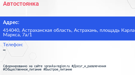 Автостоянка по адресу 414040, Астраханская область, Астрахань, площадь Карла Маркса, 7а/1 в дальнейшем Организация, размещена в следующих категориях: