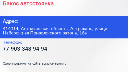 Бакос, автостоянка по адресу 414014, Астраханская область, Астрахань, улица Набережная Приволжского затона, 16а в дальнейшем Организация, размещена в следующих категориях:
