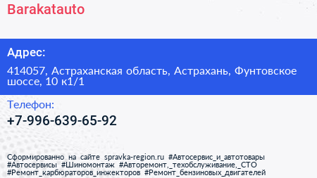Barakatauto по адресу 414057, Астраханская область, Астрахань, Фунтовское шоссе, 10 к1/1 в дальнейшем Организация, размещена в следующих категориях: