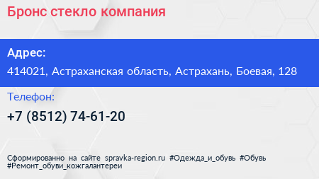 Бронс стекло, компания по адресу 414021, Астраханская область, Астрахань, Боевая, 128 в дальнейшем Организация, размещена в следующих категориях: