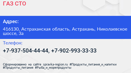 ГАЗ СТО по адресу 416130, Астраханская область, Астрахань, Николаевское шоссе, 3а в дальнейшем Организация, размещена в следующих категориях: