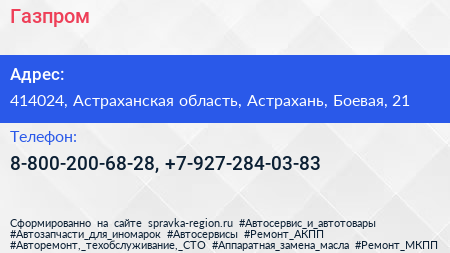 Газпром по адресу 414024, Астраханская область, Астрахань, Боевая, 21 в дальнейшем Организация, размещена в следующих категориях: