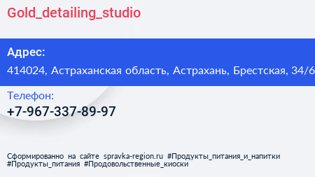 Gold_detailing_studio по адресу 414024, Астраханская область, Астрахань, Брестская, 34/6 в дальнейшем Организация, размещена в следующих категориях: