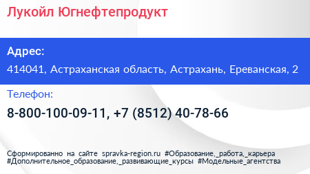 Лукойл-Югнефтепродукт по адресу 414041, Астраханская область, Астрахань, Ереванская, 2 в дальнейшем Организация, размещена в следующих категориях: