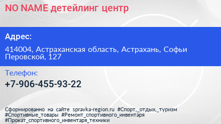 NO NAME, детейлинг-центр по адресу 414004, Астраханская область, Астрахань, Софьи Перовской, 127 в дальнейшем Организация, размещена в следующих категориях: