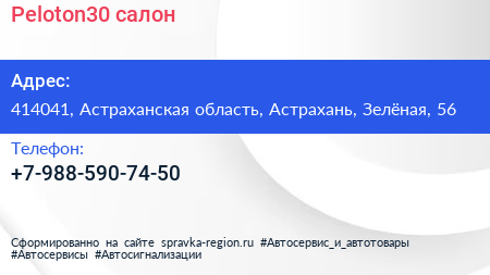 Peloton30, салон по адресу 414041, Астраханская область, Астрахань, Зелёная, 56 в дальнейшем Организация, размещена в следующих категориях: