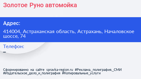 Золотое Руно, автомойка по адресу 414004, Астраханская область, Астрахань, Началовское шоссе, 74 в дальнейшем Организация, размещена в следующих категориях: