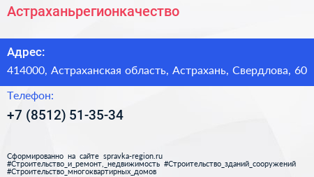 Астраханьрегионкачество по адресу 414000, Астраханская область, Астрахань, Свердлова, 60 в дальнейшем Организация, размещена в следующих категориях: