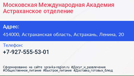 Московская Международная Академия, Астраханское отделение по адресу 414000, Астраханская область, Астрахань, Ленина, 20 в дальнейшем Организация, размещена в следующих категориях: