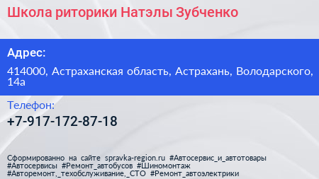 Школа риторики Натэлы Зубченко по адресу 414000, Астраханская область, Астрахань, Володарского, 14а в дальнейшем Организация, размещена в следующих категориях:
