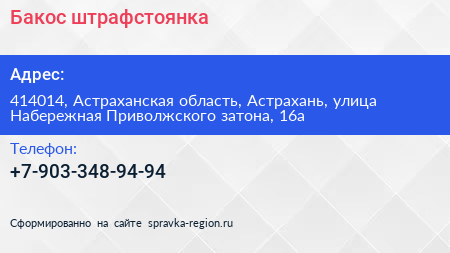 Бакос, штрафстоянка по адресу 414014, Астраханская область, Астрахань, улица Набережная Приволжского затона, 16а в дальнейшем Организация, размещена в следующих категориях: