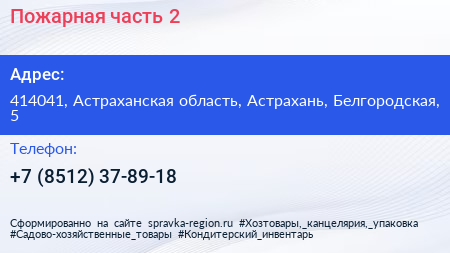 Пожарная часть №2 по адресу 414041, Астраханская область, Астрахань, Белгородская, 5 в дальнейшем Организация, размещена в следующих категориях: