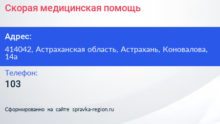 Скорая медицинская помощь по адресу 414042, Астраханская область, Астрахань, Коновалова, 14а в дальнейшем Организация, размещена в следующих категориях: