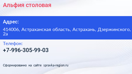 Альфия, столовая по адресу 414006, Астраханская область, Астрахань, Дзержинского, 2а в дальнейшем Организация, размещена в следующих категориях: