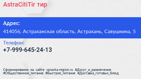 AstraCitiTir, тир по адресу 414056, Астраханская область, Астрахань, Савушкина, 5 в дальнейшем Организация, размещена в следующих категориях:
