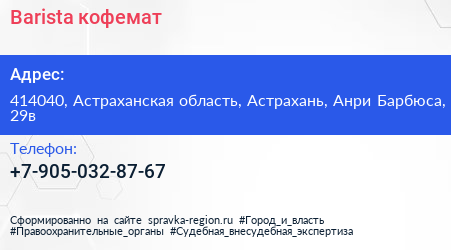 Barista, кофемат по адресу 414040, Астраханская область, Астрахань, Анри Барбюса, 29в в дальнейшем Организация, размещена в следующих категориях: