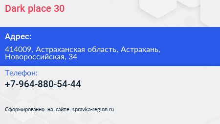 Dark place 30 по адресу 414009, Астраханская область, Астрахань, Новороссийская, 34 в дальнейшем Организация, размещена в следующих категориях: