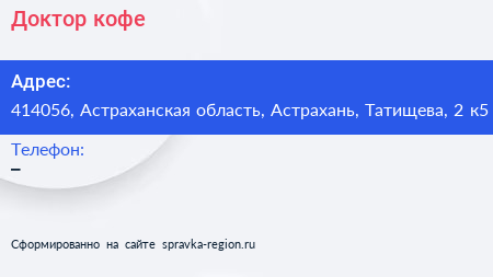 Доктор кофе по адресу 414056, Астраханская область, Астрахань, Татищева, 2 к5 в дальнейшем Организация, размещена в следующих категориях: