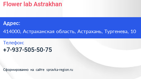 Flower lab Astrakhan по адресу 414000, Астраханская область, Астрахань, Тургенева, 10 в дальнейшем Организация, размещена в следующих категориях: