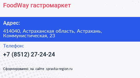 FoodWay, гастромаркет по адресу 414040, Астраханская область, Астрахань, Коммунистическая, 23 в дальнейшем Организация, размещена в следующих категориях: