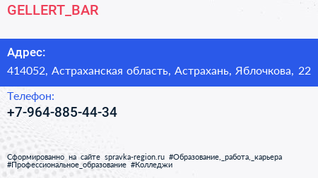 #GELLERT_BAR по адресу 414052, Астраханская область, Астрахань, Яблочкова, 22 в дальнейшем Организация, размещена в следующих категориях: