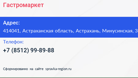 Гастромаркет по адресу 414041, Астраханская область, Астрахань, Минусинская, 3 в дальнейшем Организация, размещена в следующих категориях: