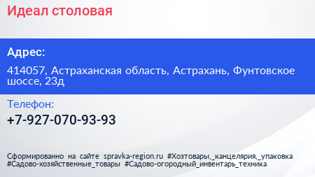 Идеал, столовая по адресу 414057, Астраханская область, Астрахань, Фунтовское шоссе, 23д в дальнейшем Организация, размещена в следующих категориях: