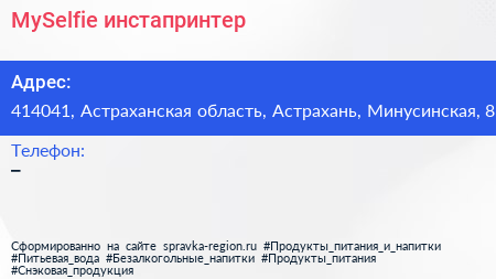 #MySelfie, инстапринтер по адресу 414041, Астраханская область, Астрахань, Минусинская, 8 в дальнейшем Организация, размещена в следующих категориях: