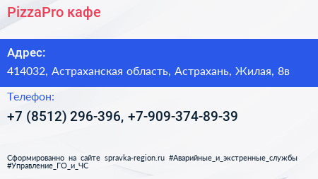 PizzaPro, кафе по адресу 414032, Астраханская область, Астрахань, Жилая, 8в в дальнейшем Организация, размещена в следующих категориях:
