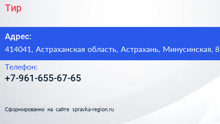 Тир по адресу 414041, Астраханская область, Астрахань, Минусинская, 8 в дальнейшем Организация, размещена в следующих категориях: