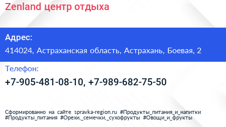 Zenland, центр отдыха по адресу 414024, Астраханская область, Астрахань, Боевая, 2 в дальнейшем Организация, размещена в следующих категориях: