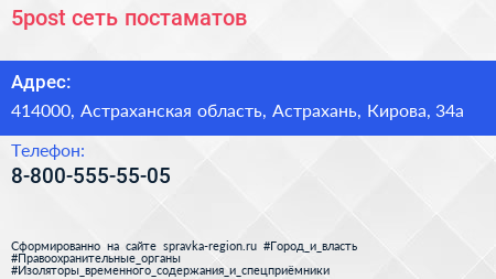 5post, сеть постаматов по адресу 414000, Астраханская область, Астрахань, Кирова, 34а в дальнейшем Организация, размещена в следующих категориях: