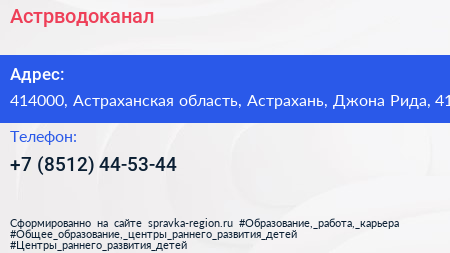 Астрводоканал по адресу 414000, Астраханская область, Астрахань, Джона Рида, 41 в дальнейшем Организация, размещена в следующих категориях: