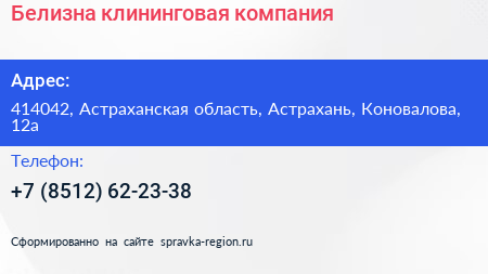 Белизна, клининговая компания по адресу 414042, Астраханская область, Астрахань, Коновалова, 12а в дальнейшем Организация, размещена в следующих категориях: