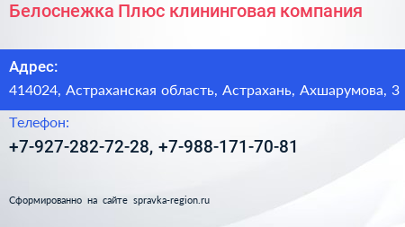 Белоснежка Плюс, клининговая компания по адресу 414024, Астраханская область, Астрахань, Ахшарумова, 3 в дальнейшем Организация, размещена в следующих категориях: