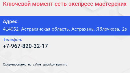 Ключевой момент, сеть экспресс-мастерских по адресу 414052, Астраханская область, Астрахань, Яблочкова, 2в в дальнейшем Организация, размещена в следующих категориях: