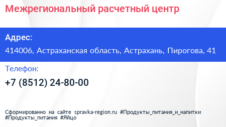 Межрегиональный расчетный центр по адресу 414006, Астраханская область, Астрахань, Пирогова, 41 в дальнейшем Организация, размещена в следующих категориях: