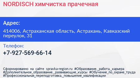 NORDISCH, химчистка-прачечная по адресу 414006, Астраханская область, Астрахань, Кавказский переулок, 31 в дальнейшем Организация, размещена в следующих категориях: