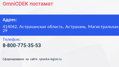 OmniCDEK, постамат по адресу 414042, Астраханская область, Астрахань, Магистральная, 29 в дальнейшем Организация, размещена в следующих категориях: