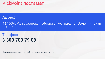 PickPoint, постамат по адресу 414004, Астраханская область, Астрахань, Зеленгинская 3-я, 11 в дальнейшем Организация, размещена в следующих категориях: