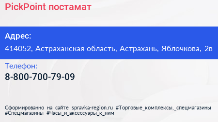 PickPoint, постамат по адресу 414052, Астраханская область, Астрахань, Яблочкова, 2в в дальнейшем Организация, размещена в следующих категориях: