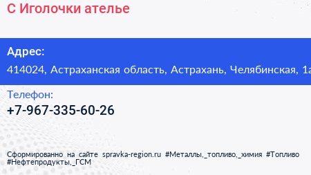 С Иголочки, ателье по адресу 414024, Астраханская область, Астрахань, Челябинская, 1а в дальнейшем Организация, размещена в следующих категориях:
