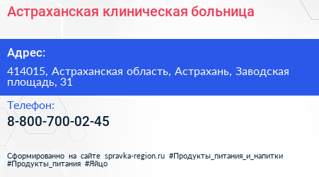Астраханская клиническая больница по адресу 414015, Астраханская область, Астрахань, Заводская площадь, 31 в дальнейшем Организация, размещена в следующих категориях: