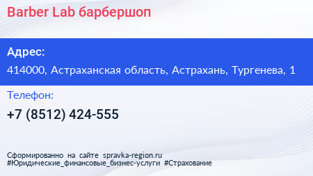 Barber Lab, барбершоп по адресу 414000, Астраханская область, Астрахань, Тургенева, 1 в дальнейшем Организация, размещена в следующих категориях: